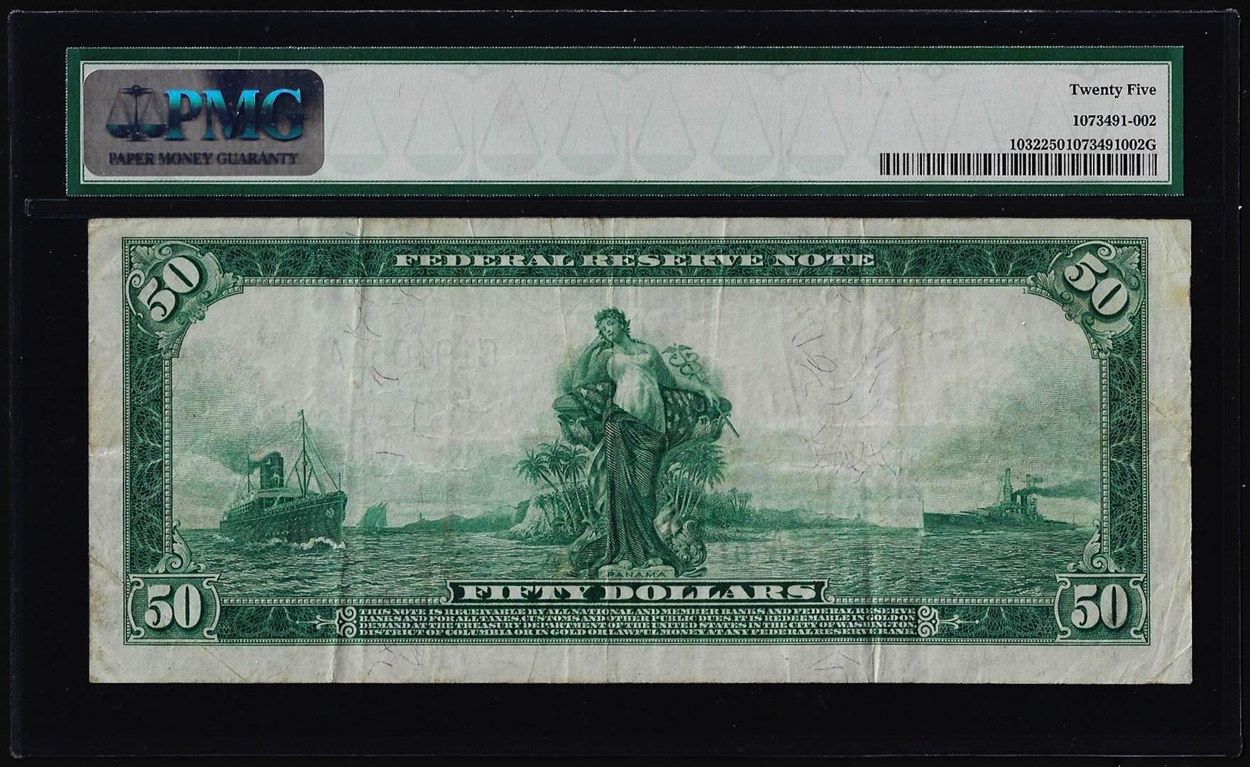 1914 $50 Federal Reserve Note Philadelphia Fr.1032 PMG Very Fine 25