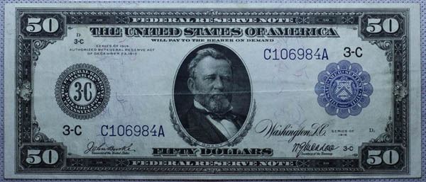 1914, $50 Federal Reserve Note, Philadelphia