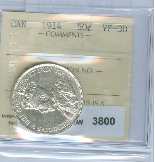 1914 50¢ ICCS VF-30. Brilliant and lustrous.