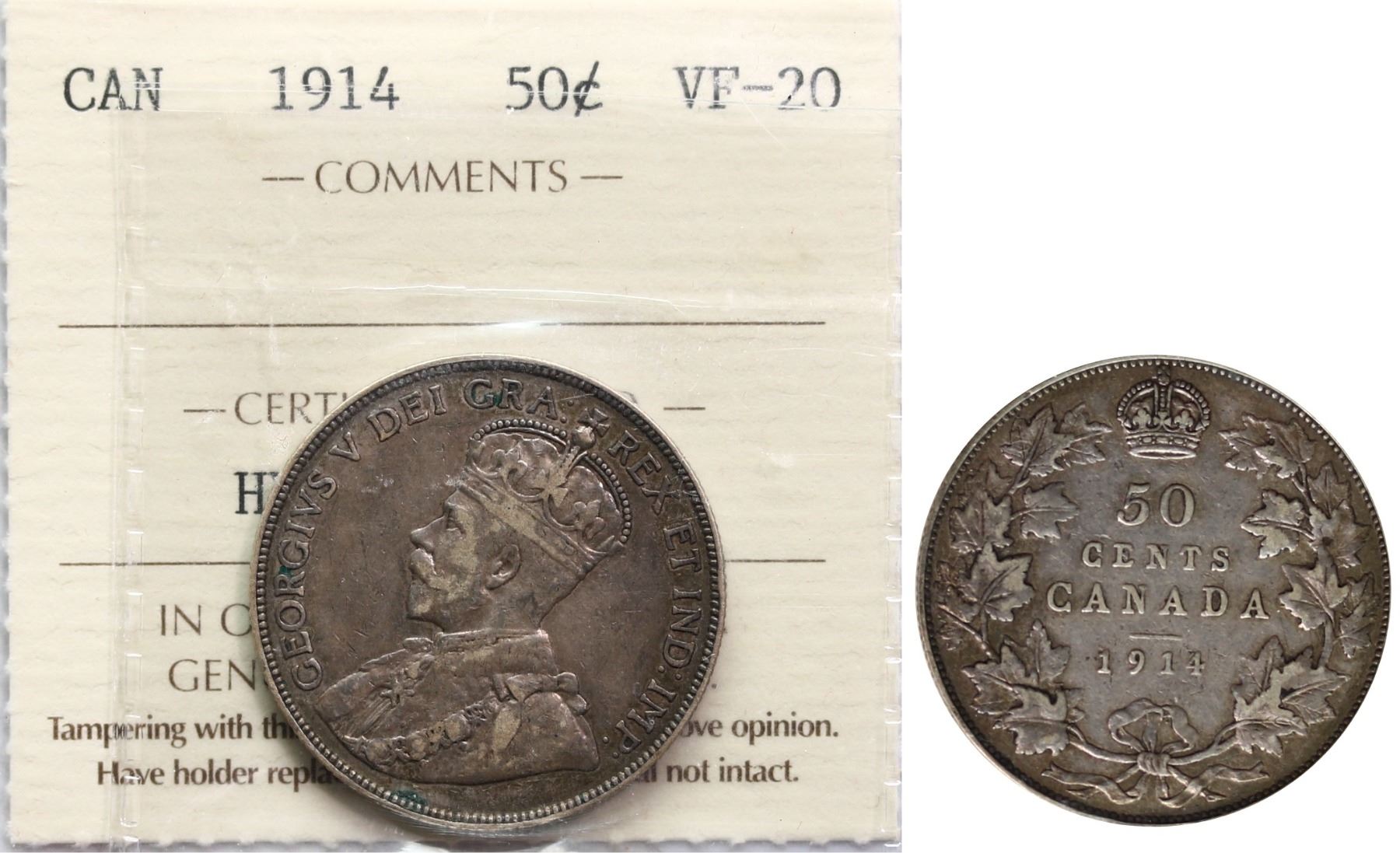 1914 50¢ ICCS Very Fine-20, Scarcer date.