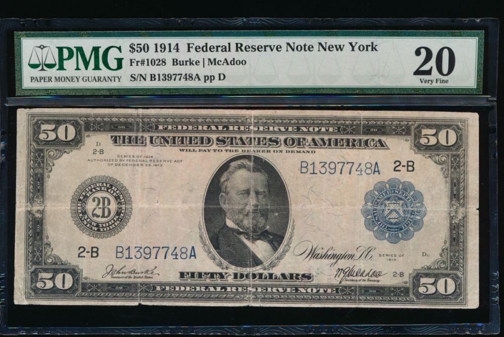 One 1914 $50 New York Federal Reserve Note PMG 20.
