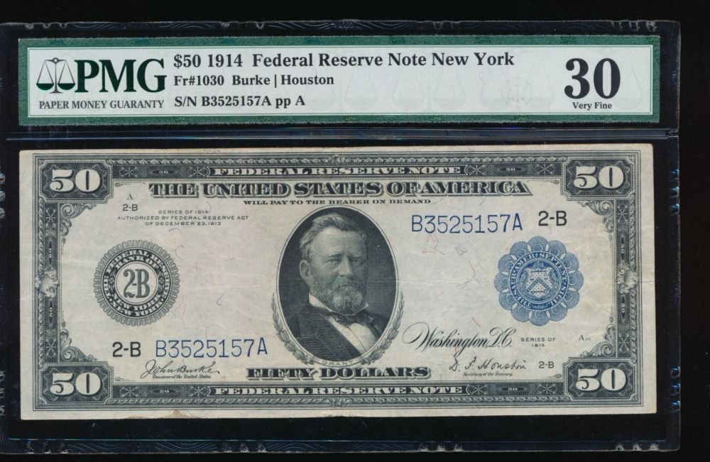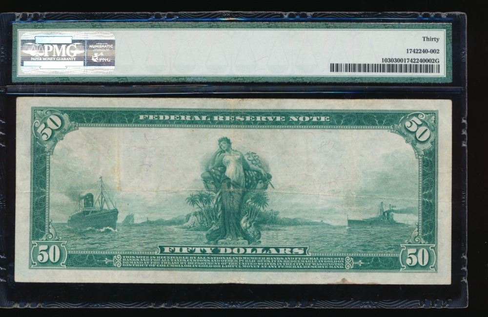 One 1914 $50 New York Federal Reserve Note PMG 30.