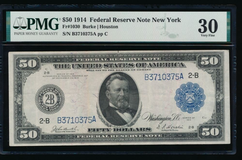One 1914 $50 New York Federal Reserve Note PMG 30.