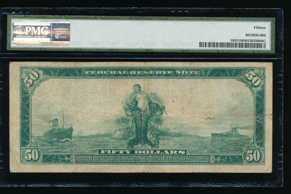 One 1914 $50 Philadelphia Federal Reserve Note PMG 15.