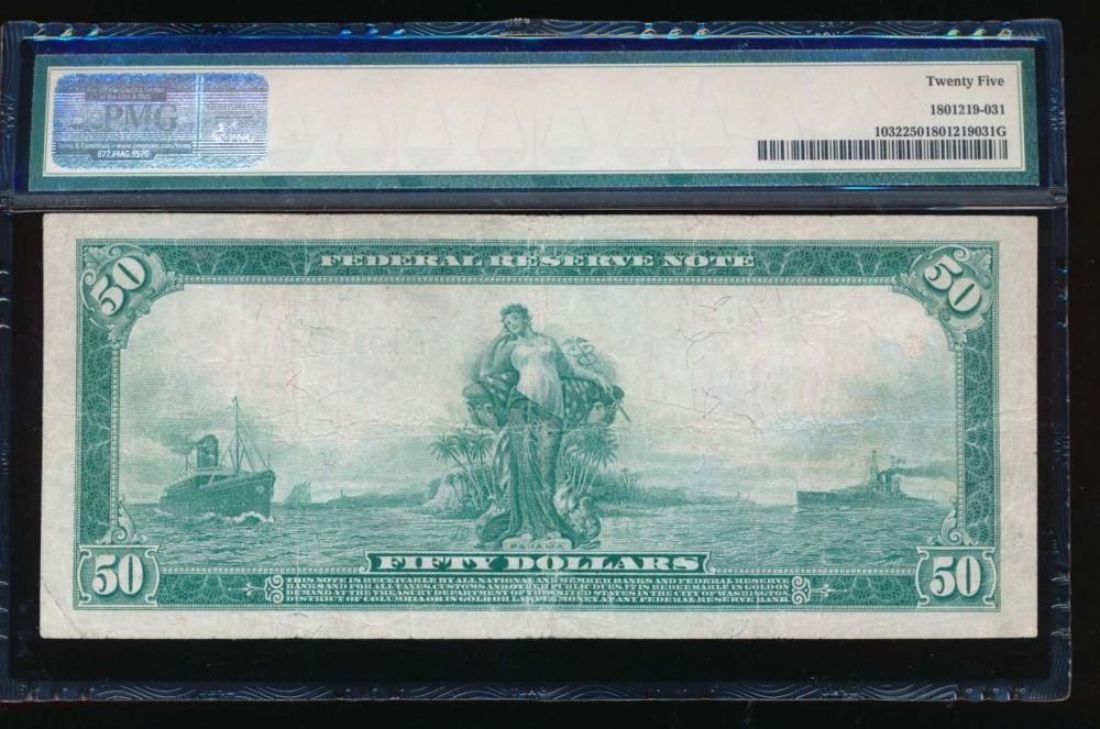 One 1914 $50 Philadelphia Federal Reserve Note PMG 25.