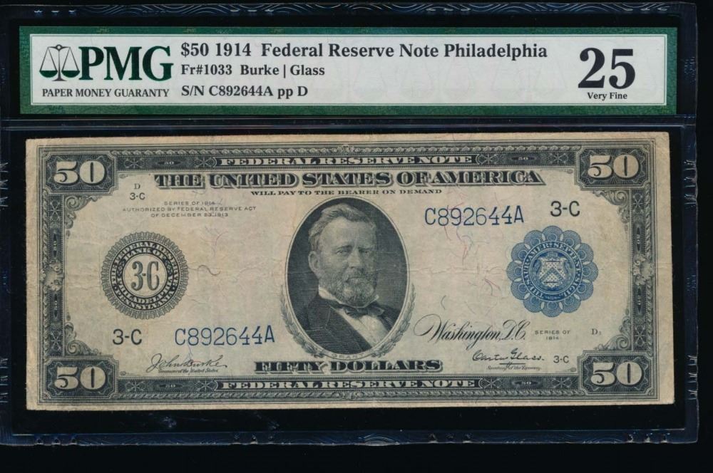 One 1914 $50 Philadelphia Federal Reserve Note PMG 25.