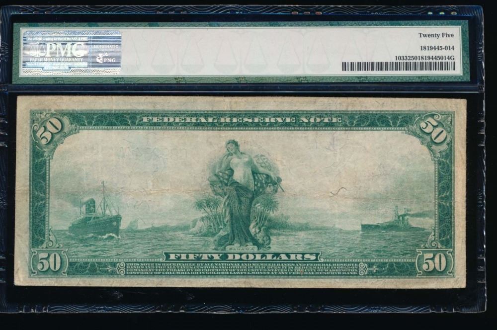 One 1914 $50 Philadelphia Federal Reserve Note PMG 25.