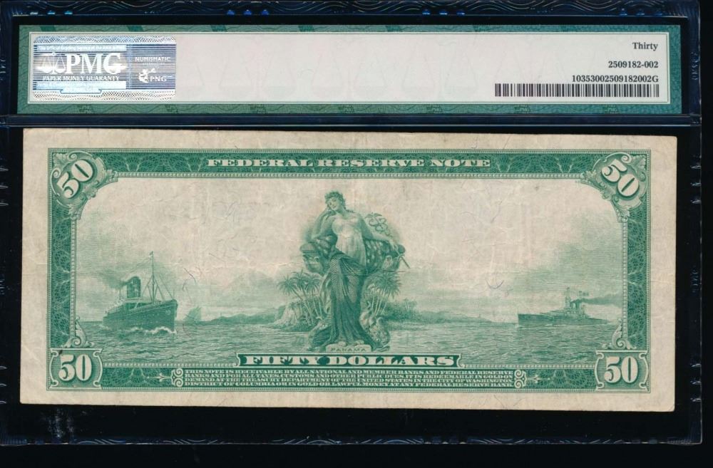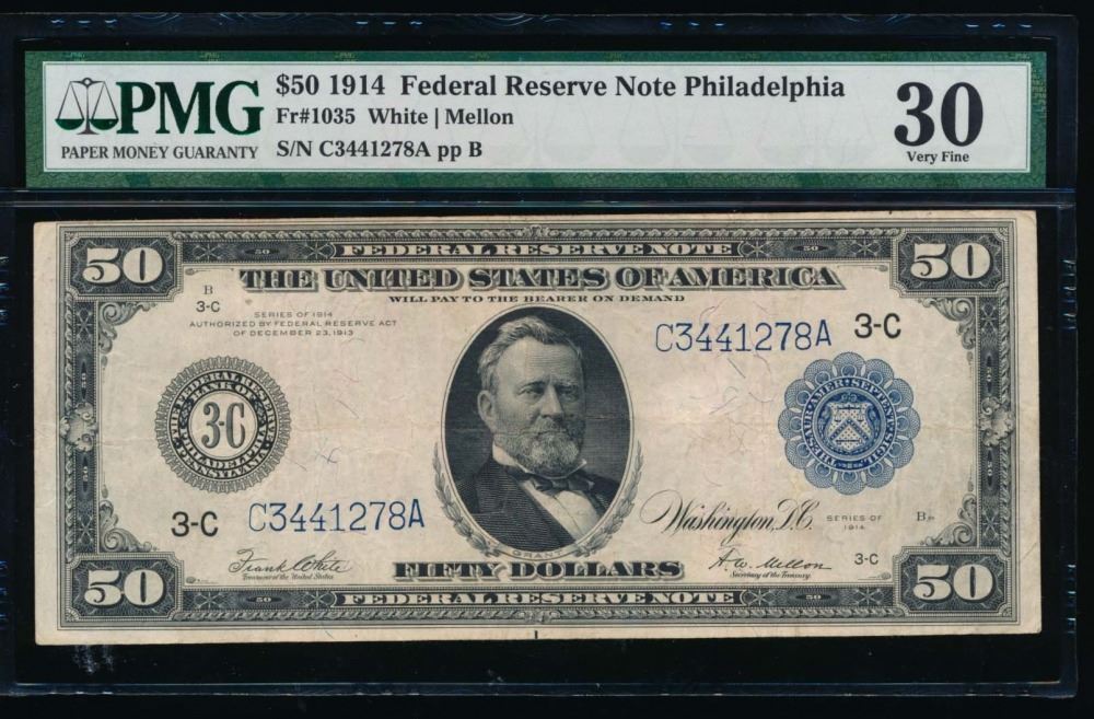 One 1914 $50 Philadelphia Federal Reserve Note PMG 30.