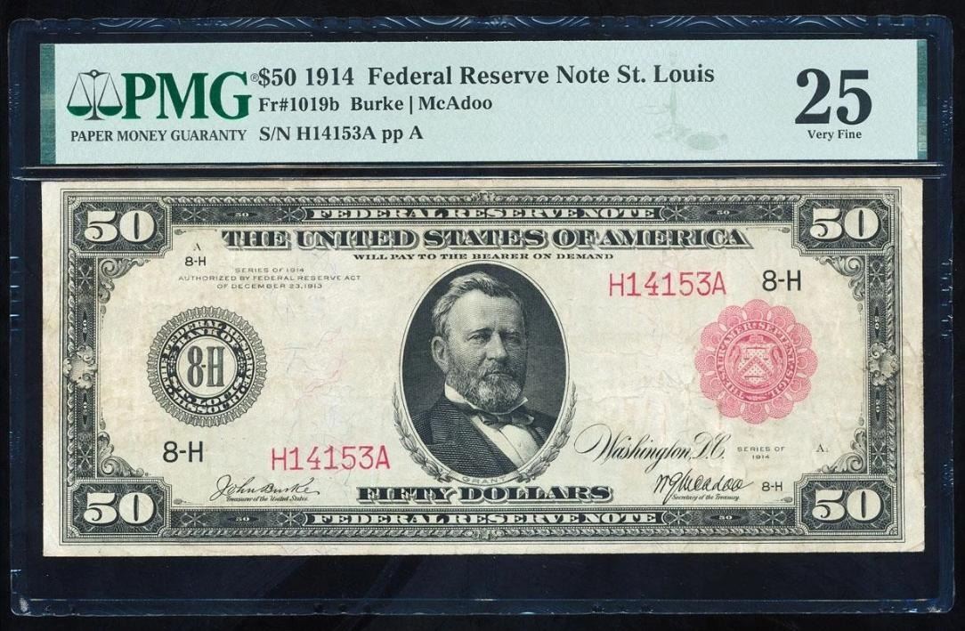 One 1914 $50 Red Seal St Louis FRN PMG 25.