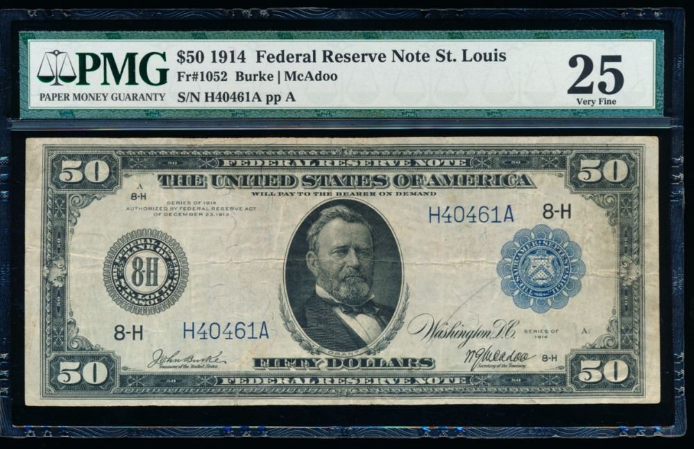 One 1914 $50 Saint Louis Federal Reserve Note PMG 25.