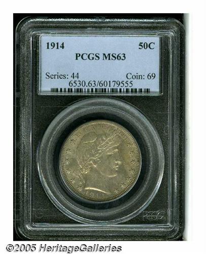 <B>1914<50C> MS63 PCGS.</B></I> Lustrous surfaces exhibit golden-gray patination, and sharply struck design elements. A few trivial marks are noted on Liberty's cheek. Population: 37 in 63, 44 finer (5/05).