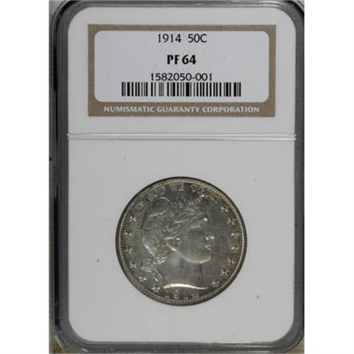 <B>1914 50C PR64 NGC.</B></I> A flashy Choice specimen from this issue of just 380 pieces. The strike is crisp as always, though the slightly hazy silver-gray, violet, and sage surfaces show a handful of light hairlines.<BR><BR><B>Coin Engraver:</B> Charles E. Barber<BR><BR><b>Shipping:</b> Coins & Currency (<a target="_blank" href="http://www.heritageauctions.com/common/shipping.php">view shipping information</a>)