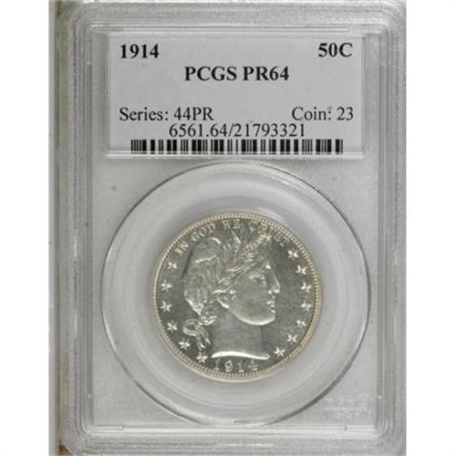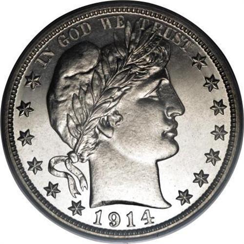 <B>1914 50C PR64 PCGS.</B></I> Crisply Struck, with bright untoned surfaces. Faint hairlines define the grade.<BR><BR><B>Coin Engraver:</B> Charles E. Barber<BR><BR><b>Shipping:</b> Coins & Currency (<a target="_blank" href="http://www.heritageauctions.com/common/shipping.php">view shipping information</a>)
