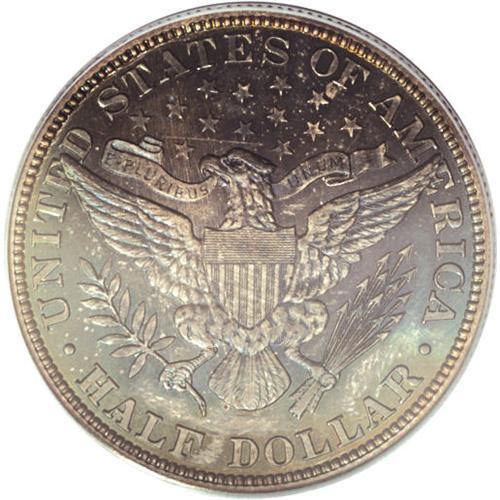 <B>1914 50C PR65 PCGS.</B></I> The 380-piece proof mintage is the lowest in the series by a wide margin, and a large number of these have been certified. Iridescent golden-tan, aqua-blue, and lavender toning runs over the obverse, while more opaque aqua-blue, lavender, and sea-green patina dominates the reverse. The design elements are exquisitely struck throughout, and well preserved surfaces are the rule. Population: 23 in 65, 25 finer (3/07).<BR><BR><b>Shipping:</b> Coins & Currency (<a target="_blank" href="http://www.heritageauctions.com/common/shipping.php">view shipping information</a>)