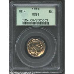 1914 5C MS66 PCGS. Bright and highly lustrous with a covering of light rose toning over each side. A