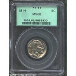 <TR><TD width="100%"><TABLE cellSpacing=1 cellPadding=3 width="100%" border=0><TBODY><TR><TD width="100%" bgColor=#79735c><FONT face=arial color=#ffffff size=3><B>Description</B> </FONT></TD></TR><TR><TD width="100%" bgColor=#ffffff><FONT face=arial size=2><B>1914 5C MS66 PCGS.</B></I> A lustrous Gem with pale lime-green and lilac patina. Typically struck, but exquisitely preserved. A few letters in UNUM are die clashed (as produced) below the Indian's chin. </FONT></TD></TR></TBODY></TABLE></TD></TR></TBODY></TABLE><BR><A name=PricesRealized></A><TABLE cellSpacing=0 cellPadding=0 width="100%" bgColor=#000000 border=0><TBODY><TR><TD width="100%"><TABLE cellSpacing=1 cellPadding=3 width="100%" border=0><TBODY><TR><TD width="100%" bgColor=#79735c><A name=PR><FONT face=arial color=#ffffff size=3><B>Previous Prices from Heritage Auctions</B> </FONT></A></TD></TR><TR><TD bgColor=#f6f6ed><TABLE cellSpacing=0 cellPadding=0 width="100%" border=1><TBODY><TR><TD align=middle width="33%"><B>Date</B></TD><TD align=middle width="33%"><B>Service</B></TD><TD align=middle width="33%"><B>Price</B></TD></TR><TR bgColor=whitesmoke><TD width="33%"><B>10/26/2000</B></TD><TD width="33%">PCGS</TD><TD width="33%">$506.00</TD></TR><TR bgColor=whitesmoke><TD width="33%"><B>04/24/1998</B></TD><TD width="33%">PCGS</TD><TD width="33%">$506.00</TD></TR><TR bgColor=whitesmoke><TD width="33%"><B>06/04/1993</B></TD><TD width="33%">PCGS</TD><TD width="33%">$808.50</TD></TR><TR bgColor=whitesmoke><TD width="33%"><B>06/01/2000</B></TD><TD width="33%">PCGS</TD><TD width="33%">$834.00</TD></TR><TR bgColor=whitesmoke><TD width="33%"><B>11/01/1999</B></TD><TD width="33%">PCGS</TD><TD width="33%">$747.00</TD></TR><TR bgColor=whitesmoke><TD width="33%"><B>11/18/1999</B></TD><TD width="33%">NGC</TD><TD width="33%">$488.75</TD></TR><TR bgColor=whitesmoke><TD width="33%"><B>02/03/1993</B></TD><TD width="33%">NGC</TD><TD width="33%">$632.50</TD></TR><TR bgColor=whitesmoke><TD width="33%"><B>01/08/1999</B></TD><TD width="33%">NGC</TD><TD width="33%">$471.50</TD></TR><TR bgColor=whitesmoke><TD width="33%"><B>03/01/2003</B></TD><TD width="33%">PCGS</TD><TD width="33%">$920.00</TD></TR><TR bgColor=whitesmoke><TD width="33%"><B>06/04/1993</B></TD><TD width="33%">NGC</TD><TD width="33%">$660.00</TD></TR></TBODY></TABLE></TD></TR><TR><TD bgColor=#ffffff><FONT face=arial size=1 ?>PLEASE NOTE: All prices realized reflect the final hammer price PLUS the buyer's premium in auctions that charge a buyer's premium. Each item has a notation at the top of the listing indicating whether that lot included a buyer's premium. Example: A item that sells with a final hammer price of $100 and a 20% buyer's premium will display with a price realized of $120. All information listed is intended to be as accurate as possible, but errors are possible. Please use this guide carefully and inform us of any inaccuracies. </FONT></TD></TR></TBODY></TABLE></TD></TR></TBODY></TABLE><BR><TABLE cellSpacing=0 cellPadding=0 width="100%" bgColor=#000000 border=0><TBODY><TR><TD width="100%"><TABLE cellSpacing=1 cellPadding=3 width="100%" border=0><TBODY><TR><TD width="100%" bgColor=#79735c colSpan=6><FONT face=arial color=#ffffff size=3><B>Price Guide*</B> </FONT></TD></TR><TR bgColor=#f6f6ed><TD align=middle><B>Grade</B> </TD><TD align=middle><B>Coin World<BR>(Trends)</B> </TD><TD align=middle><B>Numismedia<BR>Retail</B> </TD><TD align=middle><B>Numismedia<BR>Wholesale</B> </TD><TD align=middle><B>Coin<BR>Universe</B> </TD><TD align=middle><B>Heritage<BR>Value Index</B> </TD></TR><TR bgColor=#ffffff><TD align=middle>65</TD><TD align=right>$535.00</TD><TD align=right>$445.00</TD><TD align=right>$356.00</TD><TD align=right>$400.00</TD><TD align=right>$311.50</TD></TR><TR style="FONT-WEIGHT: bold" bgColor=#cccfdd><TD align=middle>66</TD><TD align=right>$1,000.00</TD><TD align=right>$880.00</TD><TD align=right>$680.00</TD><TD align=right>$1,100.00</TD><TD align=right>$848.33</TD></TR><TR bgColor=#ffffff><TD align=middle>67</TD><TD align=right>---</TD><TD align=right>---</TD><TD align=right>$5,275.00</TD><TD align=right>$8,750.00</TD><TD align=right>$6,125.00</TD></TR><TR bgColor=#ffffff><TD colSpan=6><FONT size=1>*All information listed is intended to be as accurate as possible, but errors are possible. No item may be returned or refused based on this information which is provided as a service to our customers. You should contact each pricing source directly to determine the accuracy of this information. </FONT></TD></TR></TBODY></TABLE></TD></TR></TBODY></TABLE><BR><TABLE cellSpacing=0 cellPadding=0 width="100%" bgColor=#000000 border=0><TBODY><TR><TD width="100%"><TABLE cellSpacing=1 cellPadding=3 width="100%" border=0><TBODY><TR><TD width="100%" bgColor=#79735c><FONT face=arial color=#ffffff size=3><B>Population Guide</B> </FONT></TD></TR><TR bgColor=#ffffff><TD align=middle><!-- Begin Output of Population Grid--><TABLE cellSpacing=0 cellPadding=0 width="100%" border=0><TBODY><TR><TD vAlign=center><TABLE cellSpacing=0 width="100%" border=1 cellsadding="3"><TBODY><TR><TD vAlign=center><TABLE cellSpacing=0 cellPadding=3 width="100%" border=1><TBODY><TR><TD vAlign=center align=middle bgColor=#f0f1e8 colSpan=2 <CENTER><FONT face=Arial size=2><B>PCGS Pop </B></FONT><CENTER></CENTER></TD><TD vAlign=center align=middle bgColor=#f0f1e8 colSpan=2><CENTER><FONT face=Arial size=2><B>NGC Pop</B></CENTER></FONT></TD></TR><TR><TD vAlign=center><FONT face=Arial size=2>(66)</FONT> </TD><TD vAlign=center align=right><FONT face=Arial size=2>89</FONT> </TD><TD vAlign=center><FONT face=Arial size=2>(66)</FONT> </TD><TD vAlign=center align=right><FONT face=Arial size=2>42</FONT> </TD></TR><TR><TD vAlign=center><FONT face=Arial size=2>(>66)</FONT> </TD><TD vAlign=center align=right><FONT face=Arial size=2>10</FONT> </TD><TD vAlign=center><FONT face=Arial size=2>(>66)</FONT> </TD><TD vAlign=center align=right><FONT face=Arial size=2>6</FONT> </TD></TR></TBODY></TABLE></TD></TR></TBODY></TABLE></