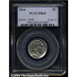 <table><tr><td><TABLE cellSpacing=0 cellPadding=0 width="100%" bgColor=#000000 border=0><TBODY> <TR><TD width="100%"><TABLE cellSpacing=1 cellPadding=3 width="100%" border=0><TBODY><TR><TD width="100%" bgColor=#79735c><FONT face=arial color=#ffffff size=3><B>Description</B> </FONT></TD></TR><TR><TD width="100%" bgColor=#ffffff><FONT face=arial size=2><B>1914 5C PR65 PCGS.</B></I> Swirls of light golden-brown patina visit this exquisitely struck and gorgeously preserved Gem. Matte proof Buffalo Nickels were only struck through 1916, and have low mintages. </FONT></TD></TR></TBODY></TABLE></TD></TR></TBODY></TABLE><BR><A name=PricesRealized></A><TABLE cellSpacing=0 cellPadding=0 width="100%" bgColor=#000000 border=0><TBODY><TR><TD width="100%"><TABLE cellSpacing=1 cellPadding=3 width="100%" border=0><TBODY><TR><TD width="100%" bgColor=#79735c><A name=PR><FONT face=arial color=#ffffff size=3><B>Previous Prices from Heritage Auctions</B> </FONT></A></TD></TR><TR><TD bgColor=#f6f6ed><TABLE cellSpacing=0 cellPadding=0 width="100%" border=1><TBODY><TR><TD align=middle width="33%"><B>Date</B></TD><TD align=middle width="33%"><B>Service</B></TD><TD align=middle width="33%"><B>Price</B></TD></TR><TR bgColor=whitesmoke><TD width="33%"><B>07/29/2003</B></TD><TD width="33%">PCGS</TD><TD width="33%">$1,840.00</TD></TR><TR bgColor=whitesmoke><TD width="33%"><B>03/01/2003</B></TD><TD width="33%">PCGS</TD><TD width="33%">$1,782.50</TD></TR><TR bgColor=whitesmoke><TD width="33%"><B>01/05/2001</B></TD><TD width="33%">PCGS</TD><TD width="33%">$1,207.50</TD></TR><TR bgColor=whitesmoke><TD width="33%"><B>09/21/1996</B></TD><TD width="33%">PCGS</TD><TD width="33%">$935.00</TD></TR><TR bgColor=whitesmoke><TD width="33%"><B>07/30/1994</B></TD><TD width="33%">PCGS</TD><TD width="33%">$1,320.00</TD></TR><TR bgColor=whitesmoke><TD width="33%"><B>06/04/1993</B></TD><TD width="33%">PCGS</TD><TD width="33%">$1,078.00</TD></TR><TR bgColor=whitesmoke><TD width="33%"><B>10/26/2000</B></TD><TD width="33%">PCGS</TD><TD width="33%">$1,092.00</TD></TR><TR bgColor=whitesmoke><TD width="33%"><B>01/09/2002</B></TD><TD width="33%">PCGS</TD><TD width="33%">$1,898.00</TD></TR><TR bgColor=whitesmoke><TD width="33%"><B>10/01/2001</B></TD><TD width="33%">PCGS</TD><TD width="33%">$1,610.00</TD></TR><TR bgColor=whitesmoke><TD width="33%"><B>11/01/1997</B></TD><TD width="33%">PCGS</TD><TD width="33%">$880.00</TD></TR></TBODY></TABLE></TD></TR><TR><TD bgColor=#ffffff><FONT face=arial size=1 ?>PLEASE NOTE: All prices realized reflect the final hammer price PLUS the buyer's premium in auctions that charge a buyer's premium. Each item has a notation at the top of the listing indicating whether that lot included a buyer's premium. Example: A item that sells with a final hammer price of $100 and a 20% buyer's premium will display with a price realized of $120. All information listed is intended to be as accurate as possible, but errors are possible. Please use this guide carefully and inform us of any inaccuracies. </FONT></TD></TR></TBODY></TABLE></TD></TR></TBODY></TABLE><BR><TABLE cellSpacing=0 cellPadding=0 width="100%" bgColor=#000000 border=0><TBODY><TR><TD width="100%"><TABLE cellSpacing=1 cellPadding=3 width="100%" border=0><TBODY><TR><TD width="100%" bgColor=#79735c colSpan=6><FONT face=arial color=#ffffff size=3><B>Price Guide*</B> </FONT></TD></TR><TR bgColor=#f6f6ed><TD align=middle><B>Grade</B> </TD><TD align=middle><B>Coin World<BR>(Trends)</B> </TD><TD align=middle><B>Numismedia<BR>Retail</B> </TD><TD align=middle><B>Numismedia<BR>Wholesale</B> </TD><TD align=middle><B>Coin<BR>Universe</B> </TD><TD align=middle><B>Heritage<BR>Value Index</B> </TD></TR><TR bgColor=#ffffff><TD align=middle>64</TD><TD align=right>---</TD><TD align=right>---</TD><TD align=right>$1,025.00</TD><TD align=right>$1,175.00</TD><TD align=right>$789.25</TD></TR><TR style="FONT-WEIGHT: bold" bgColor=#cccfdd><TD align=middle>65</TD><TD align=right>---</TD><TD align=right>---</TD><TD align=right>$1,675.00</TD><TD align=right>$2,400.00</TD><TD align=right>$1,560.00</TD></TR><TR bgColor=#ffffff><TD align=middle>66</TD><TD align=right>---</TD><TD align=right>---</TD><TD align=right>$2,050.00</TD><TD align=right>$2,900.00</TD><TD align=right>$1,969.00</TD></TR><TR bgColor=#ffffff><TD colSpan=6><FONT size=1>*All information listed is intended to be as accurate as possible, but errors are possible. No item may be returned or refused based on this information which is provided as a service to our customers. You should contact each pricing source directly to determine the accuracy of this information. </FONT></TD></TR></TBODY></TABLE></TD></TR></TBODY></TABLE><BR><TABLE cellSpacing=0 cellPadding=0 width="100%" bgColor=#000000 border=0><TBODY><TR><TD width="100%"><TABLE cellSpacing=1 cellPadding=3 width="100%" border=0><TBODY><TR><TD width="100%" bgColor=#79735c><FONT face=arial color=#ffffff size=3><B>Population Guide</B> </FONT></TD></TR><TR bgColor=#ffffff><TD align=middle><!-- Begin Output of Population Grid--><TABLE cellSpacing=0 cellPadding=0 width="100%" border=0><TBODY><TR><TD vAlign=center><TABLE cellSpacing=0 width="100%" border=1 cellsadding="3"><TBODY><TR><TD vAlign=center><TABLE cellSpacing=0 cellPadding=3 width="100%" border=1><TBODY><TR><TD vAlign=center align=middle bgColor=#f0f1e8 colSpan=2 <CENTER><FONT face=Arial size=2><B>PCGS Pop </B></FONT><CENTER></CENTER></TD><TD vAlign=center align=middle bgColor=#f0f1e8 colSpan=2><CENTER><FONT face=Arial size=2><B>NGC Pop</B></CENTER></FONT></TD></TR><TR><TD vAlign=center><FONT face=Arial size=2>(65)</FONT> </TD><TD vAlign=center align=right><FONT face=Arial size=2>106</FONT> </TD><TD vAlign=center><FONT face=Arial size=2>(65)</FONT> </TD><TD vAlign=center align=right><FONT face=Arial size=2>111</FONT> </TD></TR><TR><TD vAlign=center><FONT face=Arial size=2>(>65)</FONT> </TD><TD vAlign=center align=right><FONT face=Arial size=2>145</FONT> </TD><TD vAlign=center><FONT face=Arial size=2>(>65)</FONT> </TD><TD vA