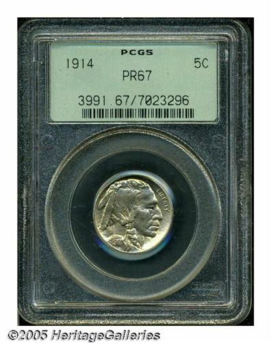 <B>1914<5C> PR67 PCGS.</B></I> Stunning visual appeal and almost perfectly preserved surfaces. Both sides show a bright appearance that is complemented with rich golden patina. This coin simply must be seen to be fully appreciated. Population: 53 in 67, 8 finer (4/05).<BR><I>From The Clifford Columbus Collection.</B></I>