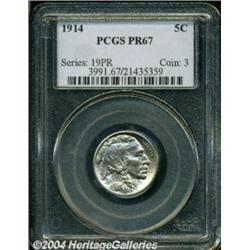<table><tbody><tr><td><table> <TR><TD width="100%"><TABLE cellSpacing=1 cellPadding=3 width="100%" border=0><TBODY><TR><TD width="100%" bgColor=#79735c><FONT face=arial color=#ffffff size=3><B>Description</B> </FONT></TD></TR><TR><TD width="100%" bgColor=#ffffff><FONT face=arial size=2><B>1914 5C PR67 PCGS.</B></I> The intricately detailed features are proof of a full strike, and the faintly granular matte surfaces seem to be pristine. Bright silver-gray, olive, and pastel apricot toning adorns each side. A truly outstanding Superb Gem. </FONT></TD></TR></TBODY></TABLE></TD></TR></TBODY></TABLE><BR><A name=PricesRealized></A><TABLE cellSpacing=0 cellPadding=0 width="100%" bgColor=#000000 border=0><TBODY><TR><TD width="100%"><TABLE cellSpacing=1 cellPadding=3 width="100%" border=0><TBODY><TR><TD width="100%" bgColor=#79735c><A name=PR><FONT face=arial color=#ffffff size=3><B>Previous Prices from Heritage Auctions</B> </FONT></A></TD></TR><TR><TD bgColor=#f6f6ed><TABLE cellSpacing=0 cellPadding=0 width="100%" border=1><TBODY><TR><TD align=middle width="33%"><B>Date</B></TD><TD align=middle width="33%"><B>Service</B></TD><TD align=middle width="33%"><B>Price</B></TD></TR><TR bgColor=whitesmoke><TD width="33%"><B>10/07/2003</B></TD><TD width="33%">PCGS</TD><TD width="33%">$4,830.00</TD></TR><TR bgColor=whitesmoke><TD width="33%"><B>01/07/2004</B></TD><TD width="33%">PCGS</TD><TD width="33%">$4,887.50</TD></TR><TR bgColor=whitesmoke><TD width="33%"><B>09/20/2003</B></TD><TD width="33%">PCGS</TD><TD width="33%">$8,337.50</TD></TR><TR bgColor=whitesmoke><TD width="33%"><B>07/29/2003</B></TD><TD width="33%">PCGS</TD><TD width="33%">$4,370.00</TD></TR><TR bgColor=whitesmoke><TD width="33%"><B>01/11/2003</B></TD><TD width="33%">PCGS</TD><TD width="33%">$4,140.00</TD></TR><TR bgColor=whitesmoke><TD width="33%"><B>01/05/2001</B></TD><TD width="33%">PCGS</TD><TD width="33%">$2,932.50</TD></TR><TR bgColor=whitesmoke><TD width="33%"><B>01/07/2000</B></TD><TD width="33%">PCGS</TD><TD width="33%">$2,932.50</TD></TR><TR bgColor=whitesmoke><TD width="33%"><B>08/13/1999</B></TD><TD width="33%">PCGS</TD><TD width="33%">$2,357.50</TD></TR><TR bgColor=whitesmoke><TD width="33%"><B>08/13/1999</B></TD><TD width="33%">PCGS</TD><TD width="33%">$2,645.00</TD></TR><TR bgColor=whitesmoke><TD width="33%"><B>03/21/1998</B></TD><TD width="33%">PCGS</TD><TD width="33%">$2,242.50</TD></TR><TR bgColor=whitesmoke><TD width="33%"><B>02/13/1998</B></TD><TD width="33%">NGC</TD><TD width="33%">$1,540.00</TD></TR><TR bgColor=whitesmoke><TD width="33%"><B>06/03/1994</B></TD><TD width="33%">NGC</TD><TD width="33%">$2,420.00</TD></TR><TR bgColor=whitesmoke><TD width="33%"><B>09/10/1993</B></TD><TD width="33%">NGC</TD><TD width="33%">$2,640.00</TD></TR><TR bgColor=whitesmoke><TD width="33%"><B>01/01/1996</B></TD><TD width="33%">NGC</TD><TD width="33%">$1,980.00</TD></TR><TR bgColor=whitesmoke><TD width="33%"><B>05/01/1996</B></TD><TD width="33%">NGC</TD><TD width="33%">$2,035.00</TD></TR><TR bgColor=whitesmoke><TD width="33%"><B>08/01/1999</B></TD><TD width="33%">NGC</TD><TD width="33%">$2,300.00</TD></TR><TR bgColor=whitesmoke><TD width="33%"><B>02/01/2000</B></TD><TD width="33%">PCGS</TD><TD width="33%">$2,070.00</TD></TR><TR bgColor=whitesmoke><TD width="33%"><B>01/01/1997</B></TD><TD width="33%">PCGS</TD><TD width="33%">$1,760.00</TD></TR><TR bgColor=whitesmoke><TD width="33%"><B>03/01/2001</B></TD><TD width="33%">NGC</TD><TD width="33%">$2,185.00</TD></TR><TR bgColor=whitesmoke><TD width="33%"><B>10/26/2000</B></TD><TD width="33%">PCGS</TD><TD width="33%">$2,070.00</TD></TR></TBODY></TABLE></TD></TR><TR><TD bgColor=#ffffff><FONT face=arial size=1 ?>PLEASE NOTE: All prices realized reflect the final hammer price PLUS the buyer's premium in auctions that charge a buyer's premium. Each item has a notation at the top of the listing indicating whether that lot included a buyer's premium. Example: A item that sells with a final hammer price of $100 and a 20% buyer's premium will display with a price realized of $120. All information listed is intended to be as accurate as possible, but errors are possible. Please use this guide carefully and inform us of any inaccuracies. </FONT></TD></TR></TBODY></TABLE></TD></TR></TBODY></TABLE><BR><TABLE cellSpacing=0 cellPadding=0 width="100%" bgColor=#000000 border=0><TBODY><TR><TD width="100%"><TABLE cellSpacing=1 cellPadding=3 width="100%" border=0><TBODY><TR><TD width="100%" bgColor=#79735c colSpan=6><FONT face=arial color=#ffffff size=3><B>Price Guide*</B> </FONT></TD></TR><TR bgColor=#f6f6ed><TD align=middle><B>Grade</B> </TD><TD align=middle><B>Coin World<BR>(Trends)</B> </TD><TD align=middle><B>Numismedia<BR>Retail</B> </TD><TD align=middle><B>Numismedia<BR>Wholesale</B> </TD><TD align=middle><B>Coin<BR>Universe</B> </TD><TD align=middle><B>Heritage<BR>Value Index</B> </TD></TR><TR bgColor=#ffffff><TD align=middle>66</TD><TD align=right>---</TD><TD align=right>---</TD><TD align=right>$2,050.00</TD><TD align=right>$2,900.00</TD><TD align=right>$1,969.00</TD></TR><TR style="FONT-WEIGHT: bold" bgColor=#cccfdd><TD align=middle>67</TD><TD align=right>---</TD><TD align=right>---</TD><TD align=right>$3,450.00</TD><TD align=right>$5,500.00</TD><TD align=right>$3,271.33</TD></TR><TR bgColor=#ffffff><TD align=middle>68</TD><TD align=right>---</TD><TD align=right>---</TD><TD align=right>$7,275.00</TD><TD align=right>---</TD><TD align=right>---</TD></TR><TR bgColor=#ffffff><TD colSpan=6><FONT size=1>*All information listed is intended to be as accurate as possible, but errors are possible. No item may be returned or refused based on this information which is provided as a service to our customers. You should contact each pricing source directly to determine the accuracy of this information. </FONT></TD></TR></TBODY></TABLE></TD></TR></TBODY></TABLE><BR><TABLE cellSpacing=0 cellPadding=0 width="100%" bgColor=#000000 border=0><TBODY><TR><TD width="100%"><TABLE cellSpacing=1 cellPadding=3 width="100%" b