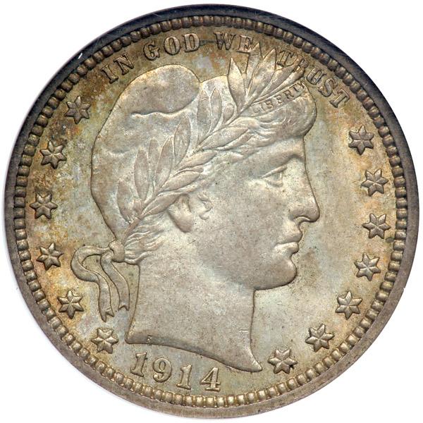 1914. NGC graded MS-63. Nice even antique toning.