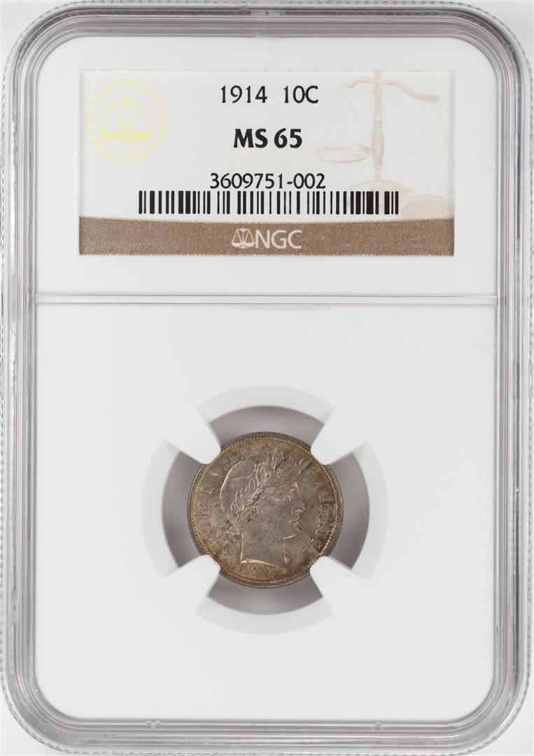 One 1914 Barber Dime Coin NGC MS65. NGC Certified.