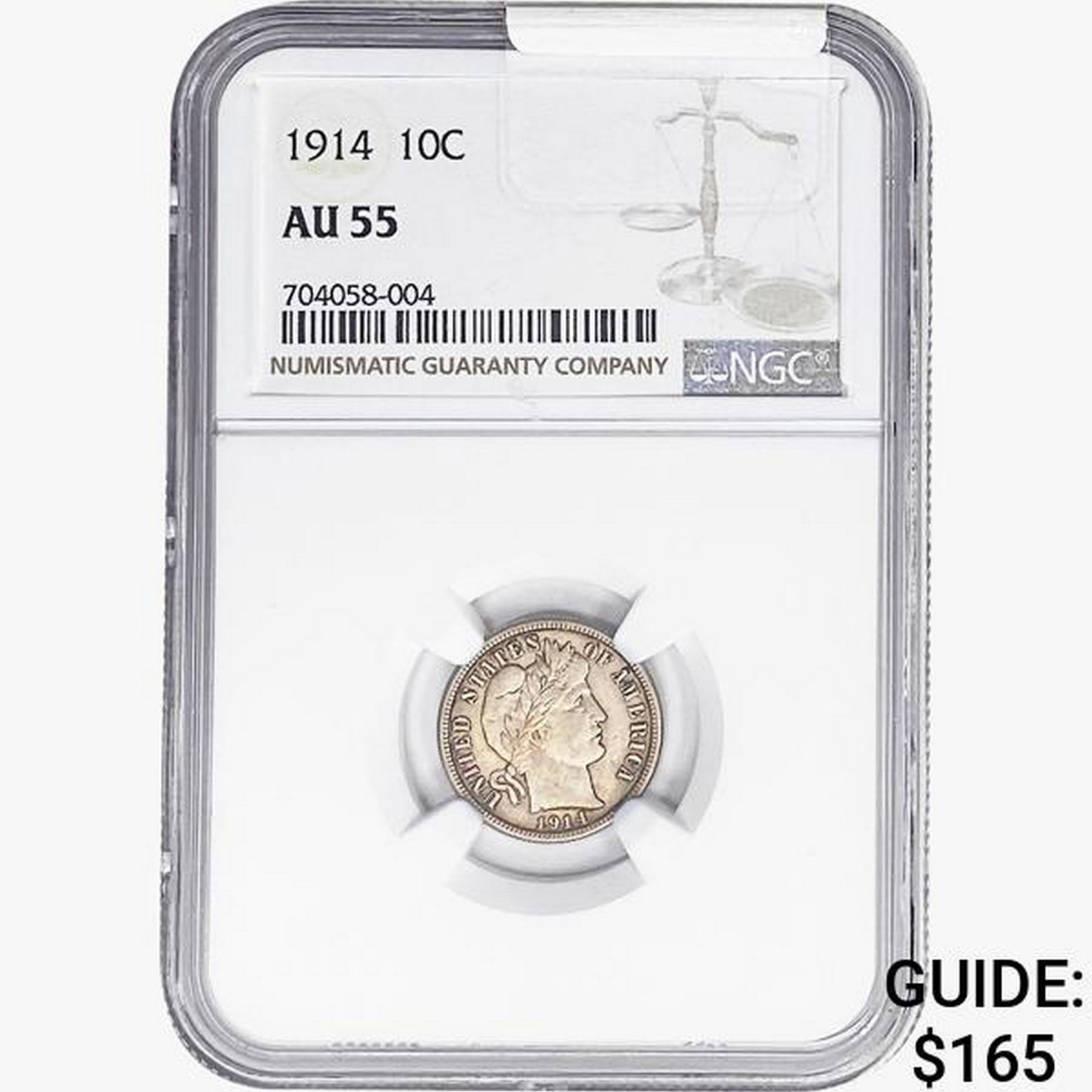 1914 Barber Dime NGC AU55
