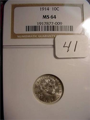 1914 Barber Dime NGC MS 64