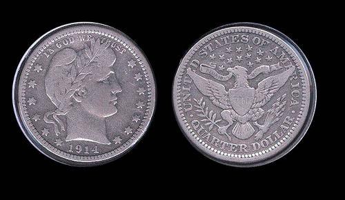 1914 Barber Quarter F/VF; Nice quality piece with full Liberty. Super!
