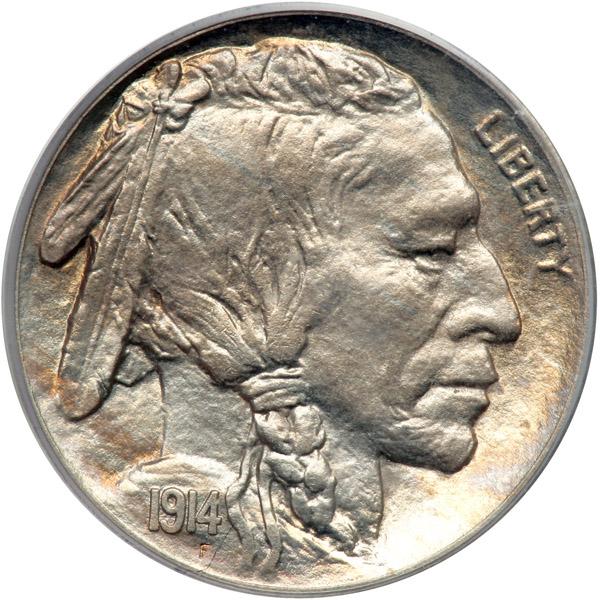 1914 Buffalo Nickel. PCGS graded Proof 65. Pleasing natural golden toning. Only 1,275 Proofs struck. An desirable and lustrous gem with sizzling detail beneath the natural toning. The reverse and obverse centers play host to a brilliance and satin quality always associated with the best quality Proof Buffalo Nickels of this decade; the stronger buyers will want to jump in. In short, a lovely coin, one that certainly meets the qualifications for the grade. Pop 129 (PCGS # 3991) .