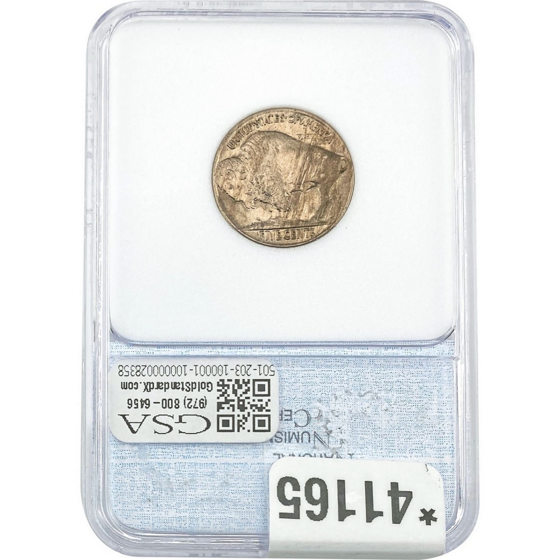 l. All non-certified coins and currency are guaranteed genuine, but are not guaranteed as to grade, since grading is a matter of opinion, an art and not a science, and therefore the description rendered by GSA or any third-party grading service may not agree with the opinion of others (including trained experts), and the same expert may not grade the same item with the same grade at two different times. GSA may, but is not obligated to, express an opinion as to non-certified numismatic items, in GSA’s opinion, or by its employees’ experience and the current interpretation of the American Numismatic Association’s standards as of the date the catalog was prepared. There is no guarantee or warranty expressed or implied that the grading opinions utilized by GSA, if any, will meet the standards of any grading service at any time in the future.
