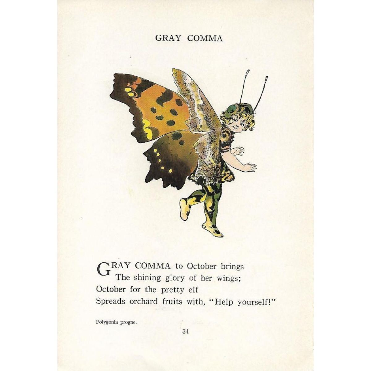 1914 Butterfly Babies Lithograph, Gray Comma, from an edition of The Butterfly Babies by Elizabeth Gordon, illustrations by Penny Ross. 6" X 8.75".