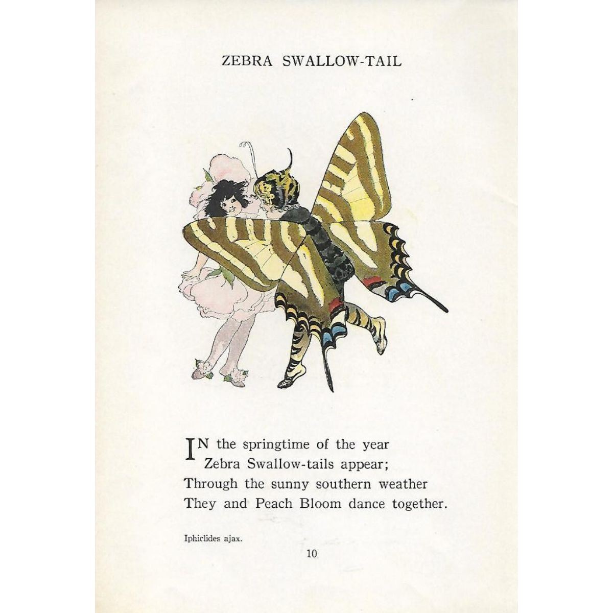 1914 Butterfly Babies Lithograph, Zebra Swallow-Tail. From an edition of The Butterfly Babies by Elizabeth Gordon, illustrations by Penny Ross. 6" X 8.75".