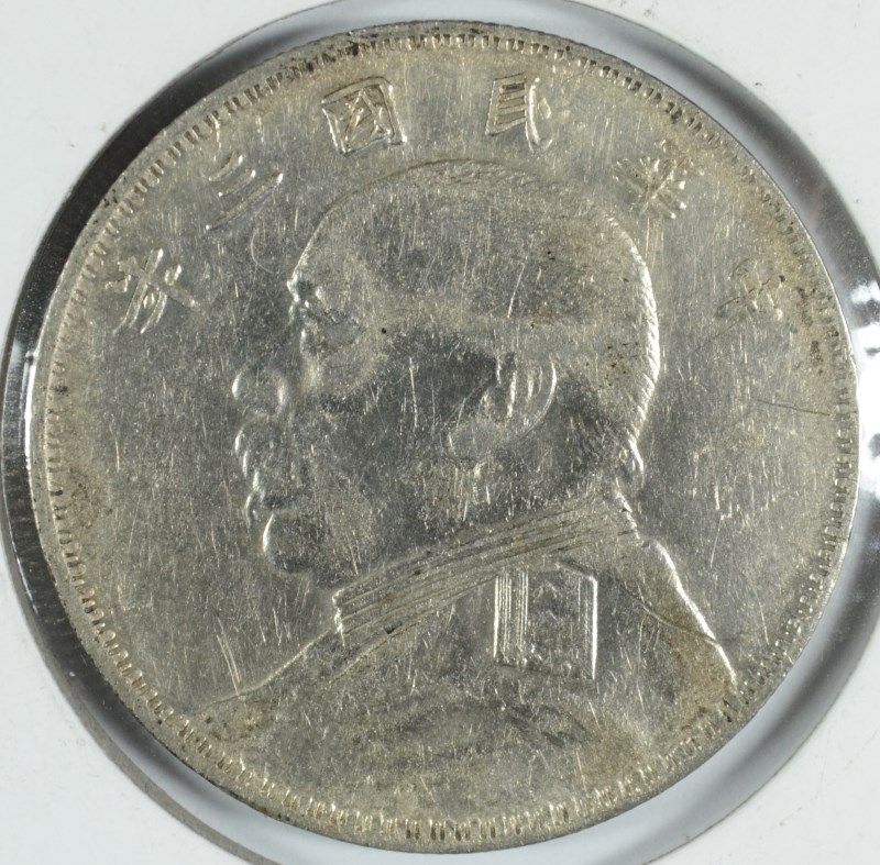 1914 CHINA SILVER DOLLAR, YUNN SHI KNI LEFT, XF/AU SCARCE!