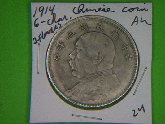 1914 CHINESE COIN WITH GENERAL AND 6 CHARACTERS & 2 FLOWERS*