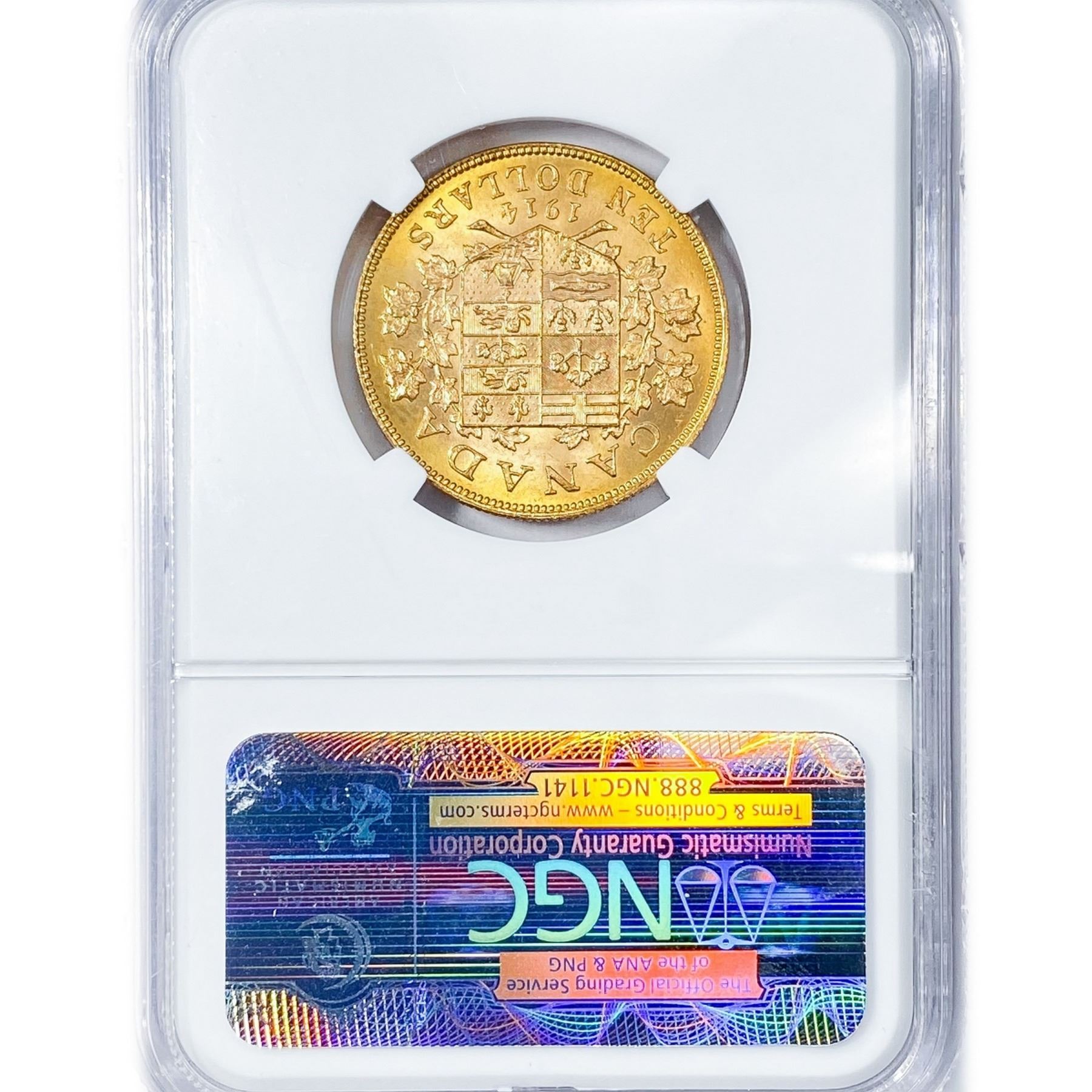 1914 Canada .4838oz Gold $10 NGC MS63 Bank of CA H