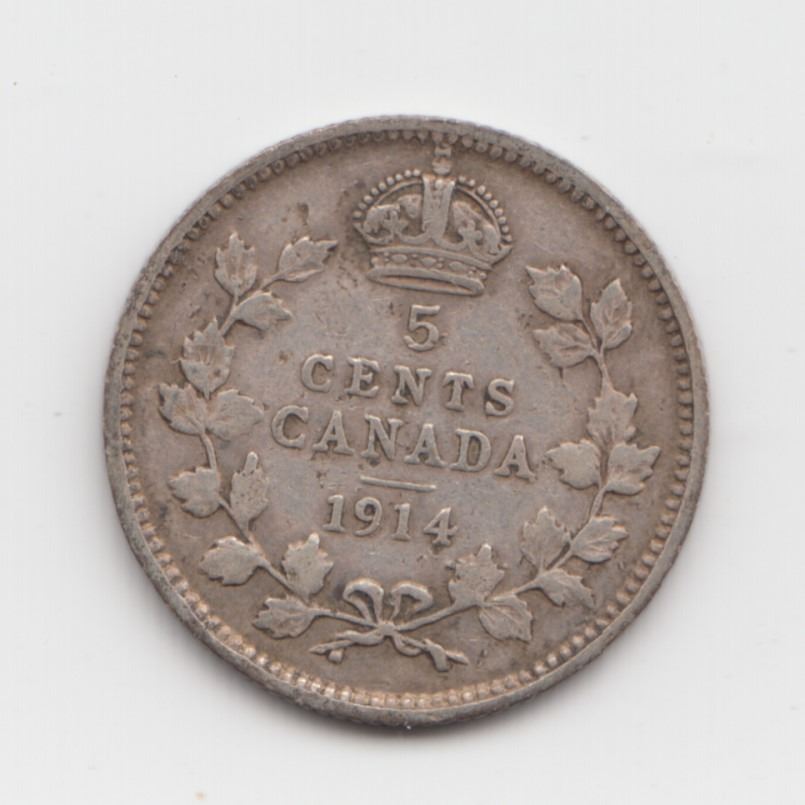 1914 Canada 5 Cent Silver Coin