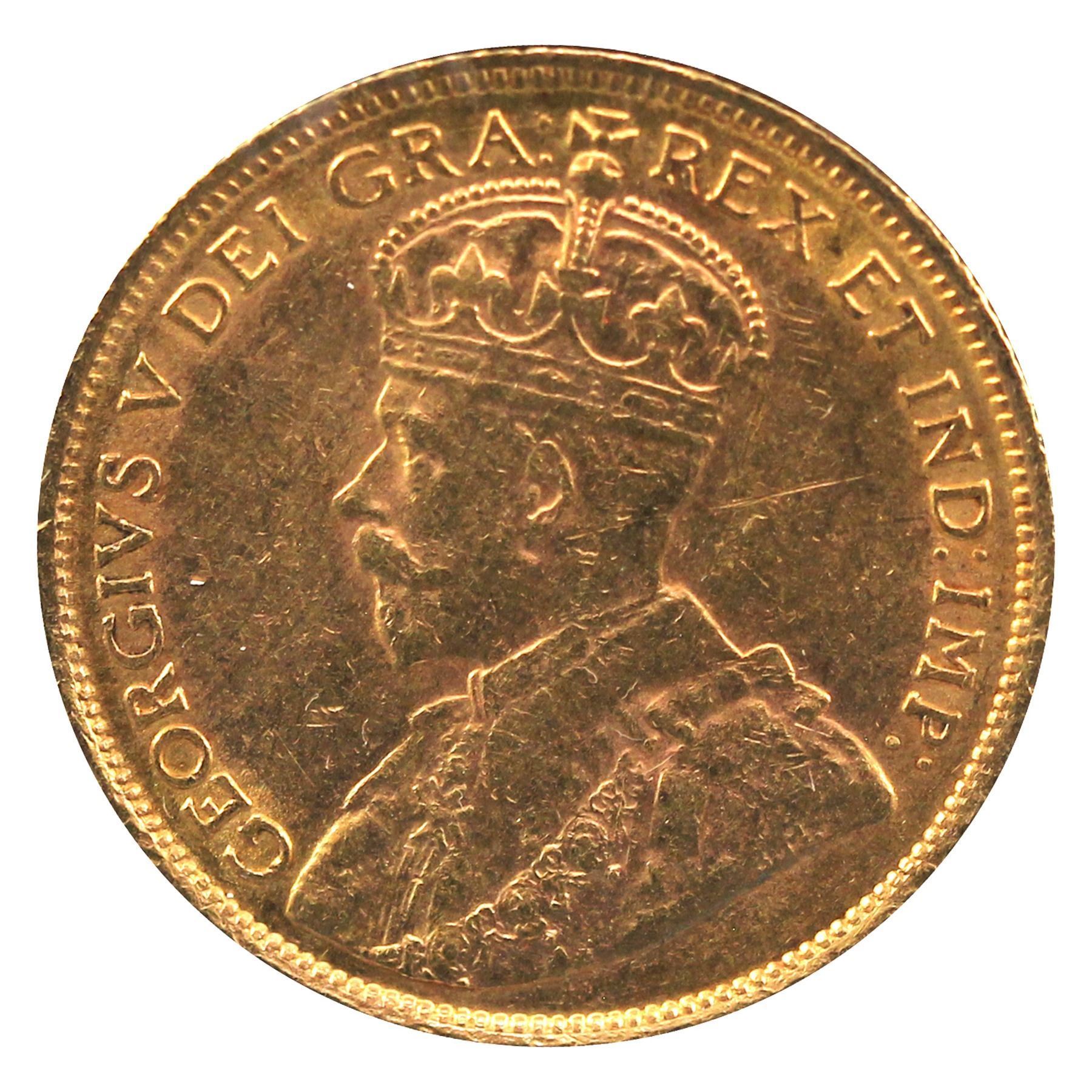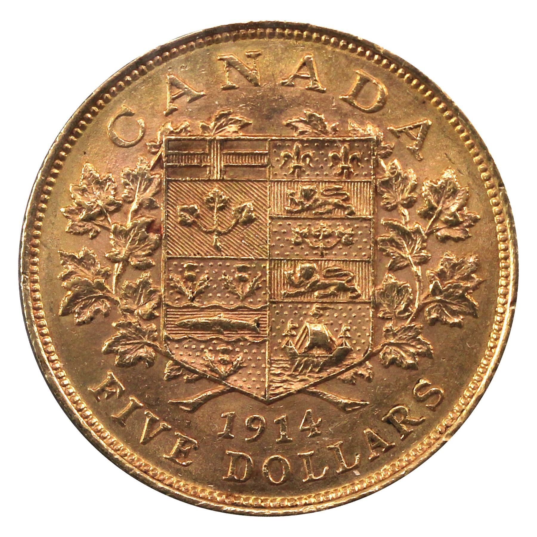 1914 Canada $5 Gold in AU (small scratch) this coin is .900 pure and contains 0.242 oz.