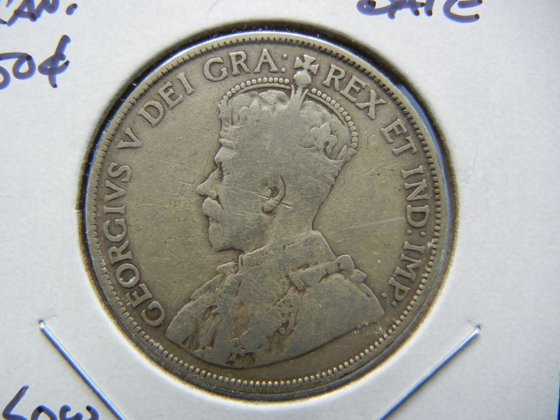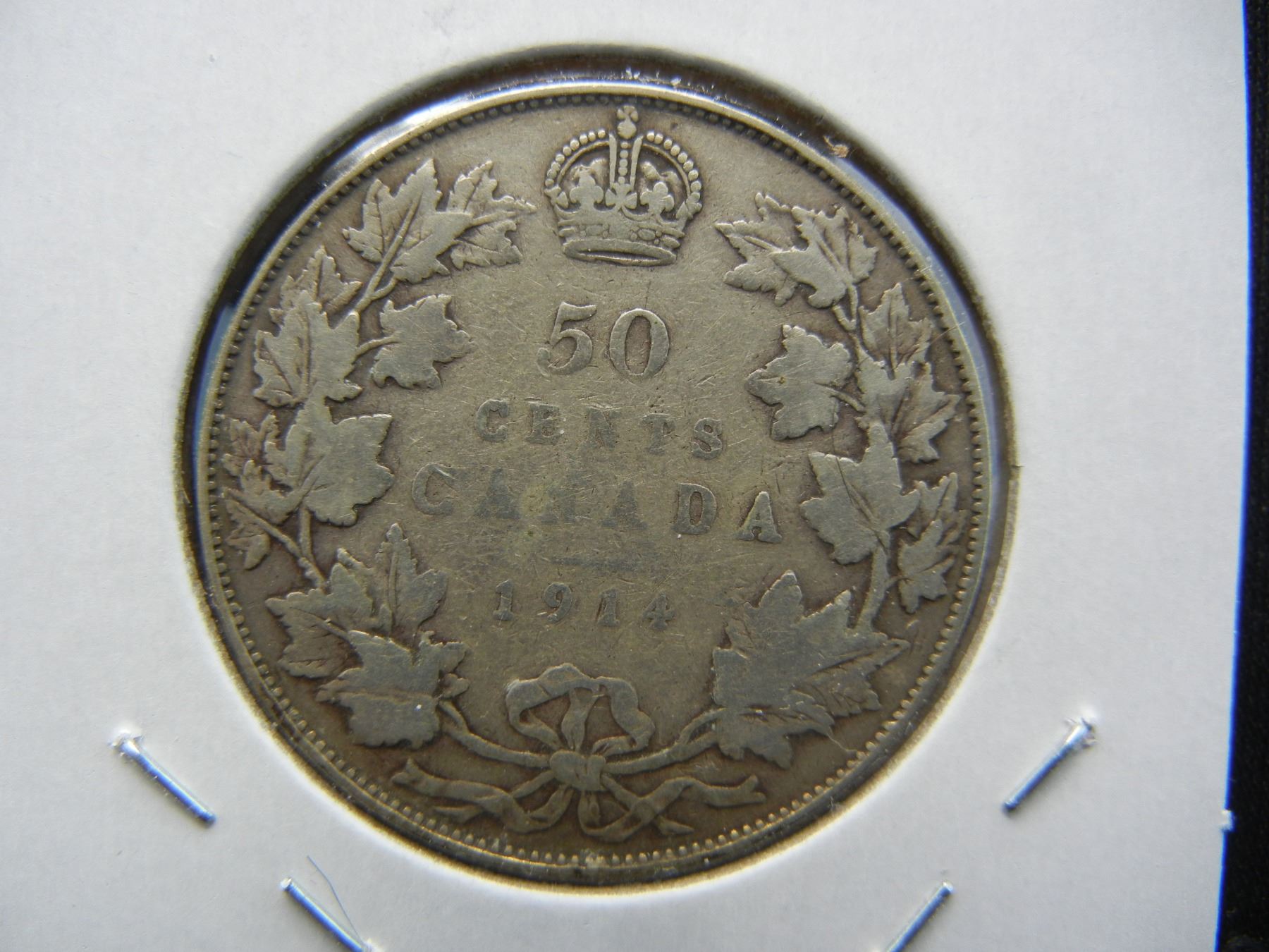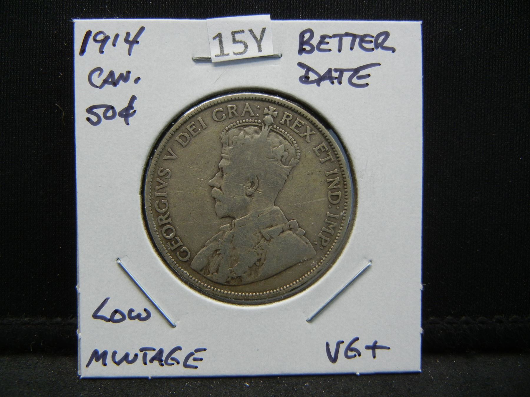 1914 Canada 50c. Better Date. Low Mintage. VG+.