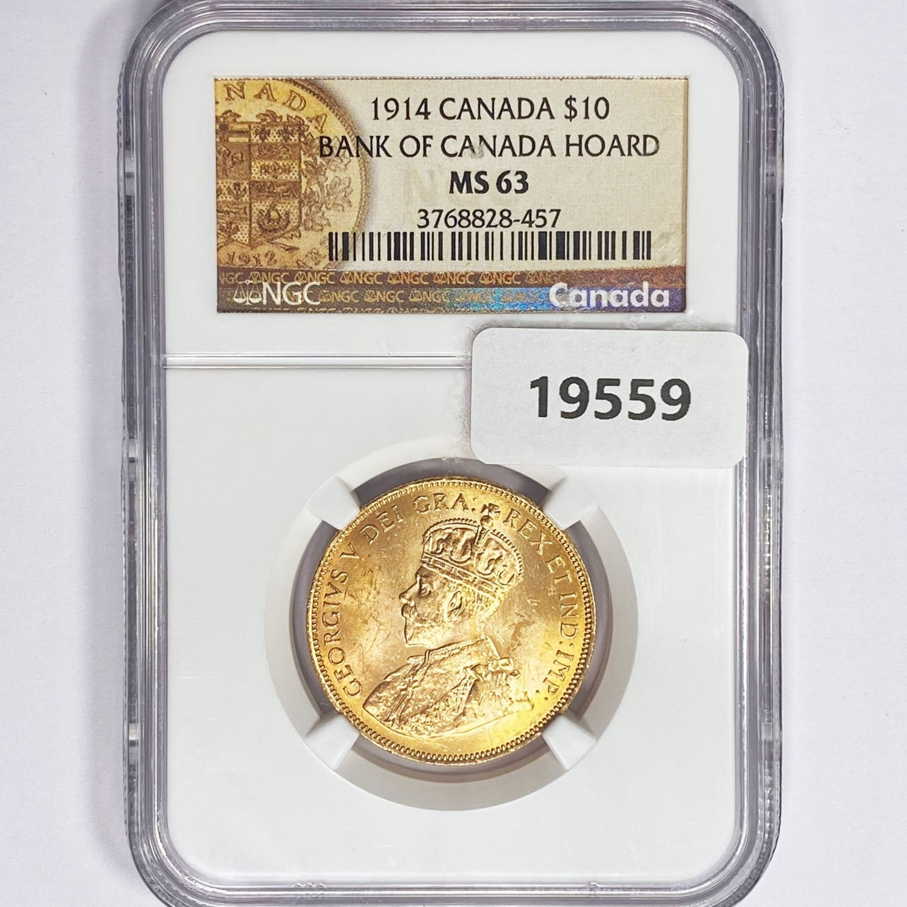 1914 Canada Gold $10 NGC MS63 Bank of Canada Hoard