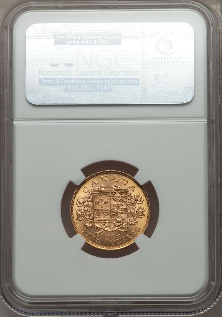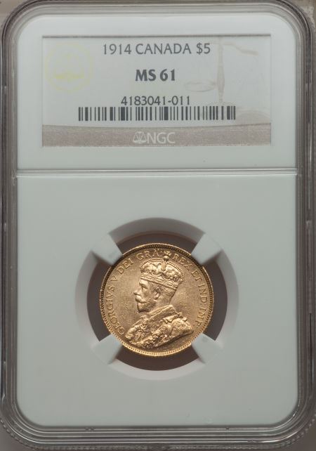 1914 Canada Gold 5 Dollar George V NGC MS61 - Value: $1400.00