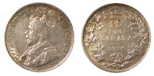0260 - 1914 Canada Twenty-Five Cents-ICCS EF40