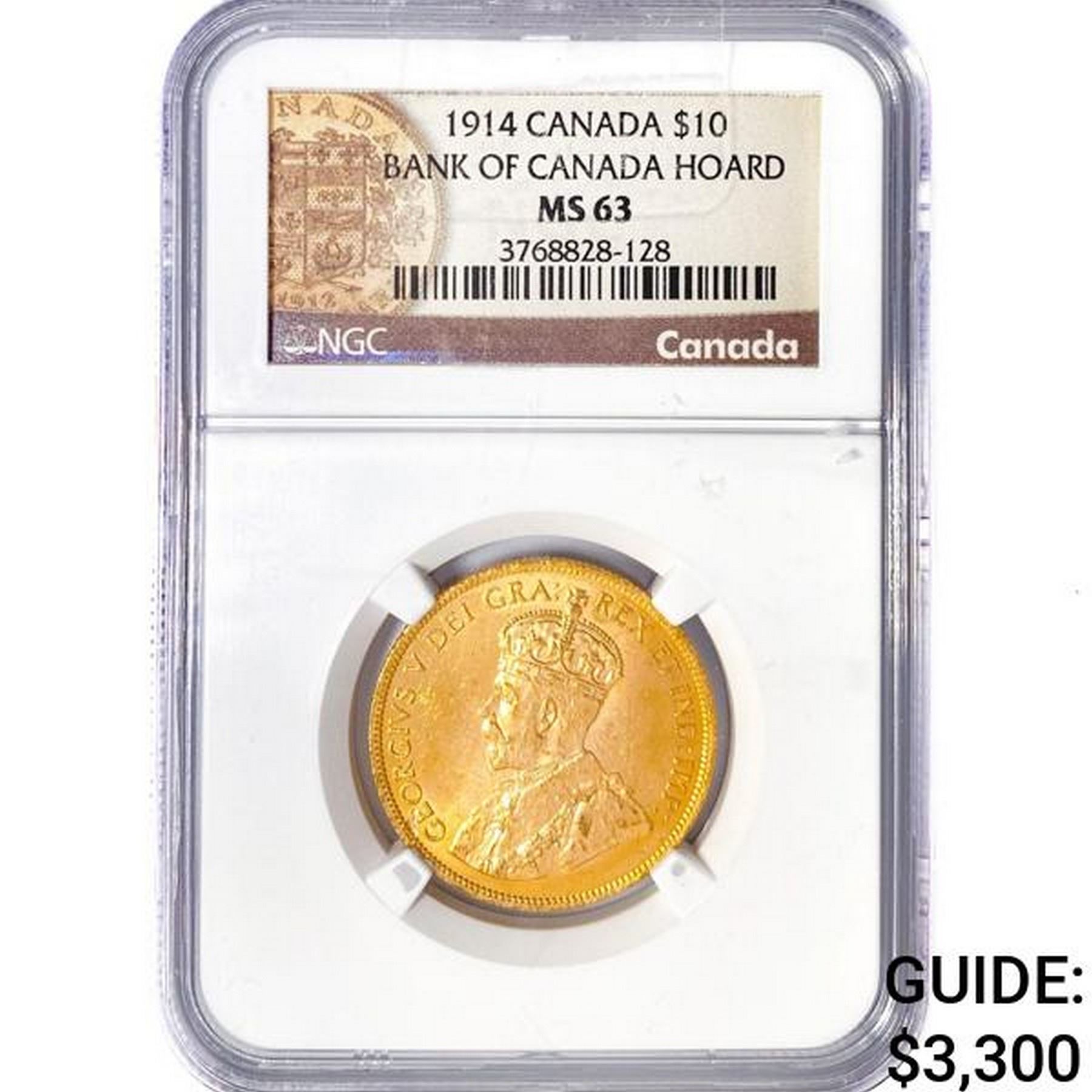 1914 Canadian $10 Gold (16.72g) NGC MS63