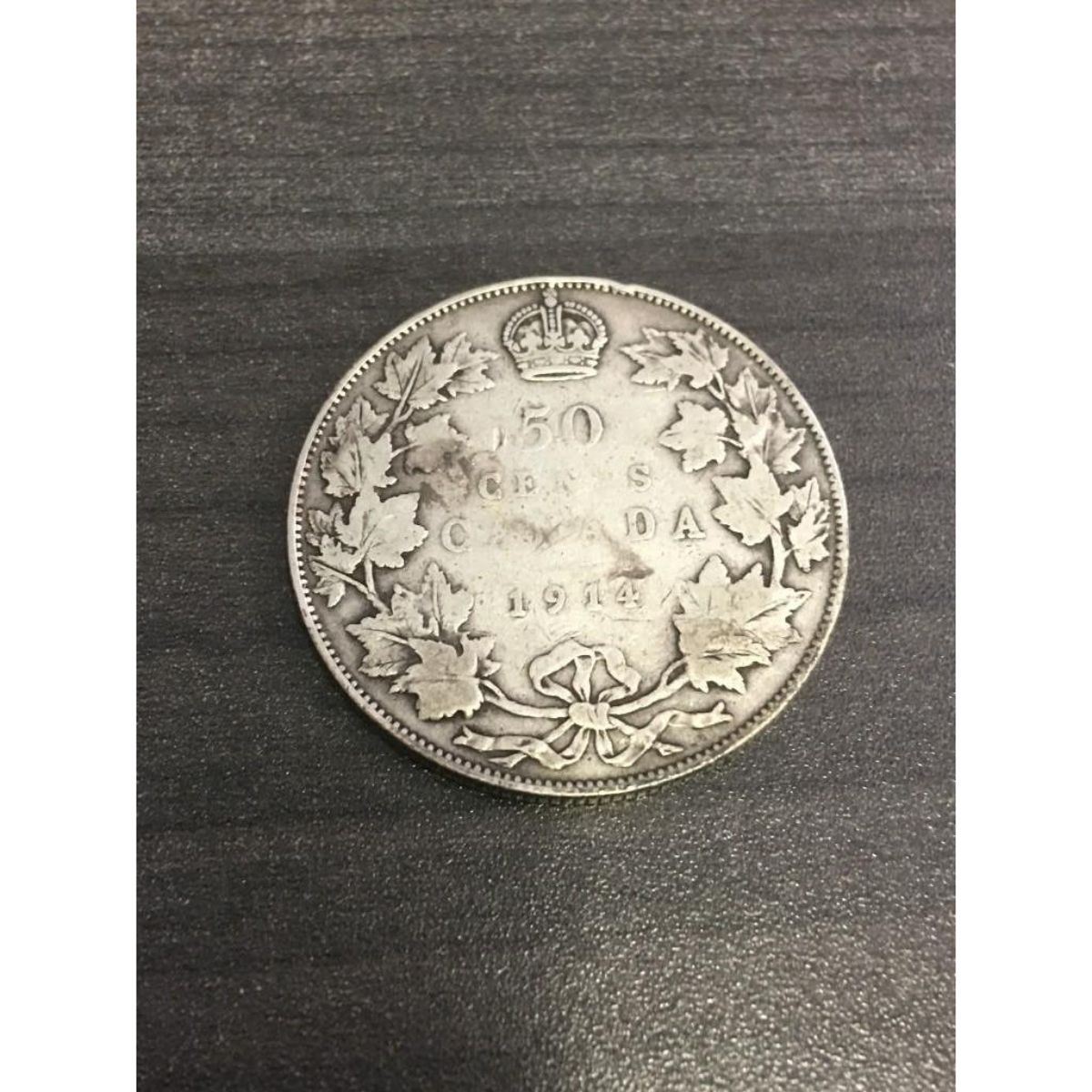 A 1914 Canadian Silver Key Date 50 Piece Cent Coin. Featuring King George V On The One Side & A Key Date On The The Coin. A Great Collector Coin. View Photos For Further Details.