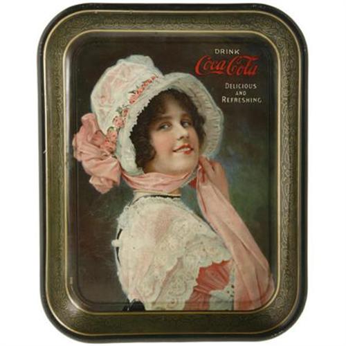 <B>1914 Coca-Cola Serving Tray</B></I> Betty, the classic model for Coke, is pictured on this tray lithographed by the Passaic Metalware Co., in Victorian lace and pink dress. Bold in it's presentation, this tray, upon closer inspection, has significant crazing to it's finish. Several very tiny pinhead spots of dirt should be noted on the lace of the dress. Viewing this piece on a shelf would make it appear near mint. The Coca-Cola copyright appears along the edge. <BR><BR><BR><b>Shipping:</b> Miscellaneous Collectibles, Smal (<a target="_blank" href="http://www.heritageauctions.com/common/shipping.php">view shipping information</a>)