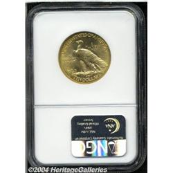 <B>1914-D<$10> MS62 NGC.</B></I> Exceptionally bright with granular textured fields. A premium quality Indian for the grade.<BR><I>From The Sarasota Collection.</B></I> <BR><BR><B>Important notice:</B> Heritage usually auctions material at the rate of 200-250 lots per hour. On some occasions eBay Live bid software or the Internet may not be able to keep up with the pace of the auction. We recommend placing a realistic absentee bid now as insurance to avoid disappointment. Occasionally the auctioneer may eliminate or reject an eBay Live bid, and the auctioneer may also reopen a lot after the close of the eBay live bidding (usually because we missed an audience bid), and may reject your bid even if it shows you as the winning bidder. By bidding via eBay Live, you agree that Heritage may award the lot to another bidder at its sole discretion under the circumstances described above or any other reasonable circumstances. Since eBay bids are not shown to us until we open the lot on the floor, we treat those bids just like floor bids. In most cases the floor responds before the eBay bid is presented to us, due to Internet lag time, so for consistency we have made it a policy that floor bids are always considered first over tie eBay live bids. Also please note that all Heritage lots purchased through eBay Live carry a 20% Buyer's Premium. Please make sure you read the Terms and Conditions before you bid. </span></font></tr></table></td></tr></table>
