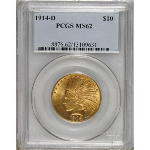 1914-D $10 MS62 PCGS. PCGS Population (377/420). N