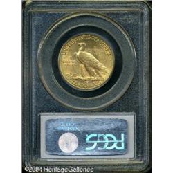 1914-D $10 MS62 PCGS. Somewhat bluntly struck with <B>1914-D $10 MS62 PCGS.</B></I> Somewhat bluntly struck with gleaming luster and a couple of minor abrasions on the central devices, with scattered field marks on the reverse also limiting the grade assessment. Affordable for type purposes. <BR><BR><B>Important notice:</B> Heritage usually auctions material at the rate of 200-250 lots per hour. On some occasions eBay Live bid software or the Internet may not be able to keep up with the pace of the auction. We recommend placing a realistic absentee bid now as insurance to avoid disappointment. Occasionally the auctioneer may eliminate or reject an eBay Live bid, and the auctioneer may also reopen a lot after the close of the eBay live bidding (usually because we missed an audience bid), and may reject your bid even if it shows you as the winning bidder. By bidding via eBay Live, you agree that Heritage may award the lot to another bidder at its sole discretion under the circumstances described above or any other reasonable circumstances. Since eBay bids are not shown to us until we open the lot on the floor, we treat those bids just like floor bids. In most cases the floor responds before the eBay bid is presented to us, due to Internet lag time, so for consistency we have made it a policy that floor bids are always considered first over tie eBay live bids. Also please note that all Heritage lots purchased through eBay Live carry a 20% Buyer's Premium. Please make sure you read the Terms and Conditions before you bid. This lot is being auctioned in conjunction with a live floor auction by Heritage Galleries & Auctioneers. All final auction and invoice information will be supplied by Heritage Galleries & Auctioneers, and all other information should be considered preliminary. Lot:6818