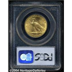 <B>1914-D<$10> MS62 PCGS.</B></I> Bright golden luster with a good strike over slightly grainy surfaces. A couple of small abrasions limit the grade. <BR><BR><B>Important notice:</B> Heritage usually auctions material at the rate of 200-250 lots per hour. On some occasions eBay Live bid software or the Internet may not be able to keep up with the pace of the auction. We recommend placing a realistic absentee bid now as insurance to avoid disappointment. Occasionally the auctioneer may eliminate or reject an eBay Live bid, and the auctioneer may also reopen a lot after the close of the eBay live bidding (usually because we missed an audience bid), and may reject your bid even if it shows you as the winning bidder. By bidding via eBay Live, you agree that Heritage may award the lot to another bidder at its sole discretion under the circumstances described above or any other reasonable circumstances. Since eBay bids are not shown to us until we open the lot on the floor, we treat those bids just like floor bids. In most cases the floor responds before the eBay bid is presented to us, due to Internet lag time, so for consistency we have made it a policy that floor bids are always considered first over tie eBay live bids. Also please note that all Heritage lots purchased through eBay Live carry a 20% Buyer's Premium. Please make sure you read the Terms and Conditions before you bid.