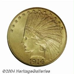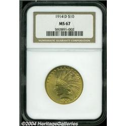 <table><tbody><tr><td><table> <TR><TD width="100%"><TABLE cellSpacing=1 cellPadding=3 width="100%" border=0><TBODY><TR><TD width="100%" bgColor=#79735c><FONT face=arial color=#ffffff size=3><B>Description</B> </FONT></TD></TR><TR><TD width="100%" bgColor=#ffffff><FONT face=arial size=2><B>1914-D $10 MS67 NGC.</B></I> This Superb Gem is simply one of the most visually stunning representatives of the Indian Eagle series that we have ever examined. The luster is vibrant, and the surfaces show a pleasing matte finish. The color is a beautiful yellow-gold, deepening slightly toward orange. We mention for accuracy a small patch of faint blemishes near the Native American's eye, and a pair of minute alloy spots on the reverse. No other example has been certified higher, by either NGC or PCGS. Population: 5 in 67, 0 finer (11/03). </FONT></TD></TR></TBODY></TABLE></TD></TR></TBODY></TABLE><BR><A name=PricesRealized></A><TABLE cellSpacing=0 cellPadding=0 width="100%" bgColor=#000000 border=0><TBODY><TR><TD width="100%"><TABLE cellSpacing=1 cellPadding=3 width="100%" border=0><TBODY><TR><TD width="100%" bgColor=#79735c><A name=PR><FONT face=arial color=#ffffff size=3><B>Previous Prices from Heritage Auctions</B> </FONT></A></TD></TR><TR><TD bgColor=#f6f6ed><TABLE cellSpacing=0 cellPadding=0 width="100%" border=1><TBODY><TR><TD align=middle width="33%"><B>Date</B></TD><TD align=middle width="33%"><B>Service</B></TD><TD align=middle width="33%"><B>Price</B></TD></TR><TR bgColor=whitesmoke><TD width="33%"><B>01/08/1999</B></TD><TD width="33%">PCGS</TD><TD width="33%">$20,700.00</TD></TR></TBODY></TABLE></TD></TR><TR><TD bgColor=#ffffff><FONT face=arial size=1 ?>PLEASE NOTE: All prices realized reflect the final hammer price PLUS the buyer's premium in auctions that charge a buyer's premium. Each item has a notation at the top of the listing indicating whether that lot included a buyer's premium. Example: A item that sells with a final hammer price of $100 and a 20% buyer's premium will display with a price realized of $120. All information listed is intended to be as accurate as possible, but errors are possible. Please use this guide carefully and inform us of any inaccuracies. </FONT></TD></TR></TBODY></TABLE></TD></TR></TBODY></TABLE><BR><TABLE cellSpacing=0 cellPadding=0 width="100%" bgColor=#000000 border=0><TBODY><TR><TD width="100%"><TABLE cellSpacing=1 cellPadding=3 width="100%" border=0><TBODY><TR><TD width="100%" bgColor=#79735c colSpan=6><FONT face=arial color=#ffffff size=3><B>Price Guide*</B> </FONT></TD></TR><TR bgColor=#f6f6ed><TD align=middle><B>Grade</B> </TD><TD align=middle><B>Coin World<BR>(Trends)</B> </TD><TD align=middle><B>Numismedia<BR>Retail</B> </TD><TD align=middle><B>Numismedia<BR>Wholesale</B> </TD><TD align=middle><B>Coin<BR>Universe</B> </TD><TD align=middle><B>Heritage<BR>Value Index</B> </TD></TR><TR bgColor=#ffffff><TD align=middle>66</TD><TD align=right>---</TD><TD align=right>---</TD><TD align=right>$12,750.00</TD><TD align=right>$20,500.00</TD><TD align=right>$13,587.50</TD></TR><TR style="FONT-WEIGHT: bold" bgColor=#cccfdd><TD align=middle>67</TD><TD align=right>---</TD><TD align=right>---</TD><TD align=right>$27,500.00</TD><TD align=right>---</TD><TD align=right>$18,450.00</TD></TR><TR bgColor=#ffffff><TD align=middle>68</TD><TD align=right>---</TD><TD align=right>---</TD><TD align=right>---</TD><TD align=right>---</TD><TD align=right>---</TD></TR><TR bgColor=#ffffff><TD colSpan=6><FONT size=1>*All information listed is intended to be as accurate as possible, but errors are possible. No item may be returned or refused based on this information which is provided as a service to our customers. You should contact each pricing source directly to determine the accuracy of this information. </FONT></TD></TR></TBODY></TABLE></TD></TR></TBODY></TABLE><BR><TABLE cellSpacing=0 cellPadding=0 width="100%" bgColor=#000000 border=0><TBODY><TR><TD width="100%"><TABLE cellSpacing=1 cellPadding=3 width="100%" border=0><TBODY><TR><TD width="100%" bgColor=#79735c><FONT face=arial color=#ffffff size=3><B>Population Guide</B> </FONT></TD></TR><TR bgColor=#ffffff><TD align=middle><!-- Begin Output of Population Grid--><TABLE cellSpacing=0 cellPadding=0 width="100%" border=0><TBODY><TR><TD vAlign=center><TABLE cellSpacing=0 width="100%" border=1 cellsadding="3"><TBODY><TR><TD vAlign=center><TABLE cellSpacing=0 cellPadding=3 width="100%" border=1><TBODY><TR><TD vAlign=center align=middle bgColor=#f0f1e8 colSpan=2 <CENTER><FONT face=Arial size=2><B>PCGS Pop </B></FONT><CENTER></CENTER></TD><TD vAlign=center align=middle bgColor=#f0f1e8 colSpan=2><CENTER><FONT face=Arial size=2><B>NGC Pop</B></CENTER></FONT></TD></TR><TR><TD vAlign=center><FONT face=Arial size=2>(67)</FONT> </TD><TD vAlign=center align=right><FONT face=Arial size=2>3</FONT> </TD><TD vAlign=center><FONT face=Arial size=2>(67)</FONT> </TD><TD vAlign=center align=right><FONT face=Arial size=2>5</FONT> </TD></TR><TR><TD vAlign=center><FONT face=Arial size=2>(>67)</FONT> </TD><TD vAlign=center align=right><FONT face=Arial size=2>0</FONT> </TD><TD vAlign=center><FONT face=Arial size=2>(>67)</FONT> </TD><TD vAlign=center align=right><FONT face=Arial size=2>0</FONT> </TD></TR></TBODY></TABLE></TD></TR></TBODY></TABLE></TD></TR></TBODY></TABLE><!-- End Output of Population Grid--></TD></TR></TBODY></TABLE></TD></TR></TBODY></TABLE><BR><TABLE cellSpacing=0 cellPadding=0 width="100%" bgColor=#000000 border=0><TBODY><TR> <font color='#000000'><span style='background-color: #FFFFFF'><td bgcolor='#FFFFFE'> Important notice: Heritage usually auctions material at the rate of 200-250 lots per hour. On some occasions eBay Live bid software or the Internet may not be able to keep up with the pace of the auction. We recommend placing a realistic absentee bid now as insurance to avoid disappointment. Occasionally the auctioneer may eliminate or reject an eBay Live bid, and the auctioneer may also reopen a lot after the close of the eBay liv