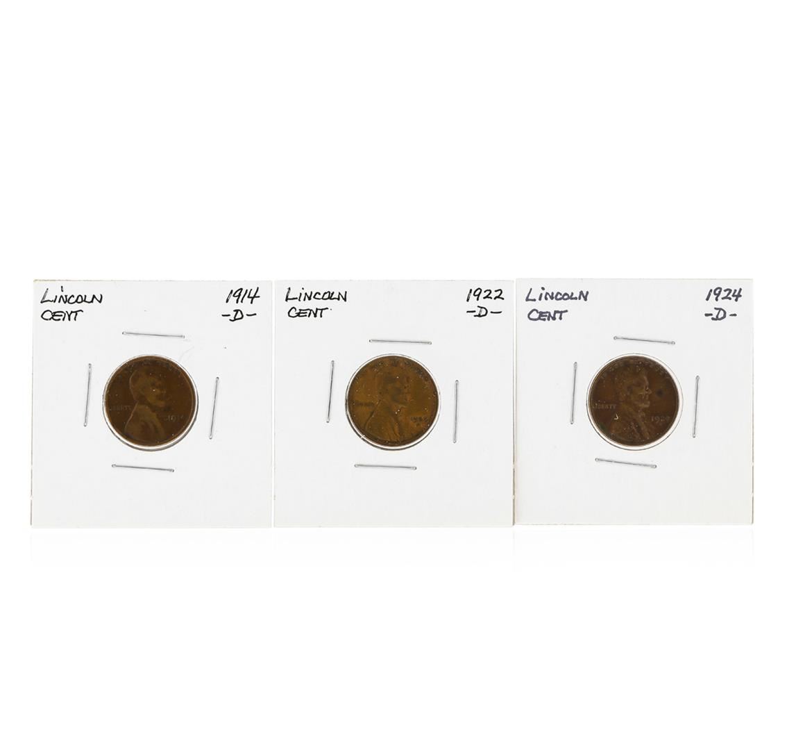 1914-D, 1922-D, 1924-D Lincoln Wheat Cent Key Date Set